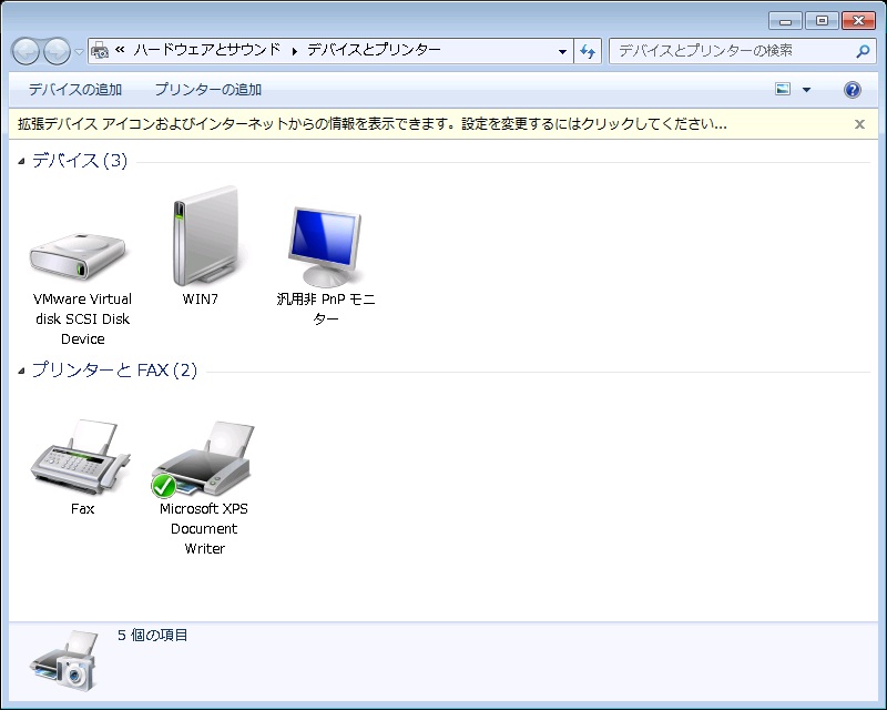 Windows 7 の デバイスとプリンター![]() クリックで拡大 |
