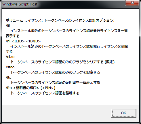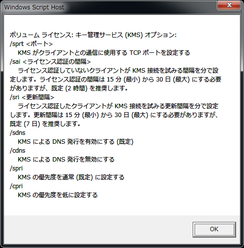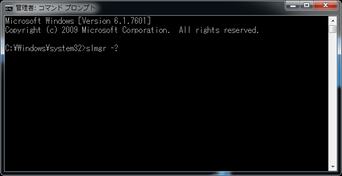 「slmgr -?」と入力して実行します。