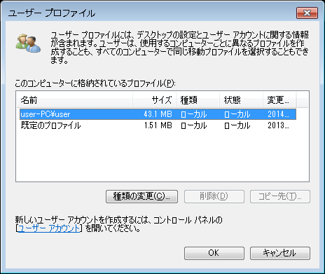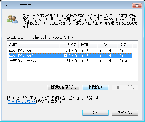 Windows 7 の端末でユーザープロファイルをクリアしようと管理者権限のユーザーで「C:\Users」の下にあるユーザー名のフォルダを削除しました。