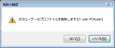 クリックで拡大 - 削除確認メッセージが表示されますので「はい」をクリックするとプロファイルを削除できます。