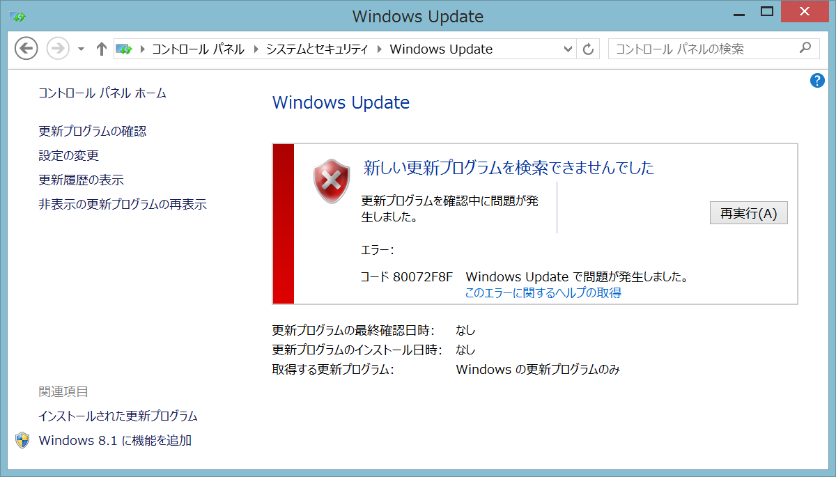 Windows Update がエラーで失敗する(4)(80072F8F)