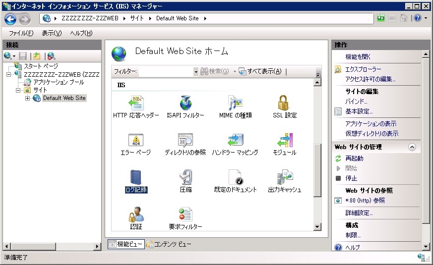 IIS のログ保存場所の確認と変更方法(IIS 7.0)