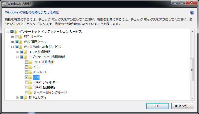 ここで「モジュール」の一欄に「FastCgiModule」がないと、直接入力してもエラーになってしまいます。