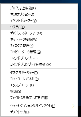 - キーボードの Windwos ロゴキーを押しながら「X」キーを押します。