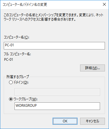 - 「コンピューター名/ドメイン名の変更」ダイアログが起動します。