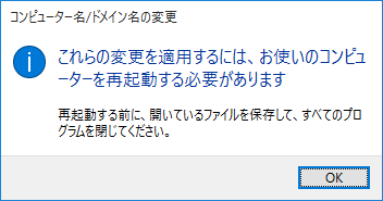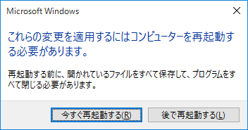 - 再起動が必要な旨、確認のメッセージが表示されます。