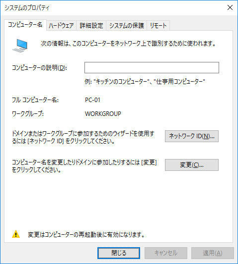 Windows 10 のコンピューター名を変更します。