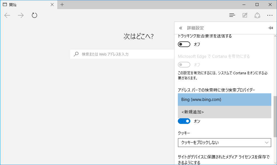最初は選択支には Bing しか入っていないので「新規追加」をクリックします。
