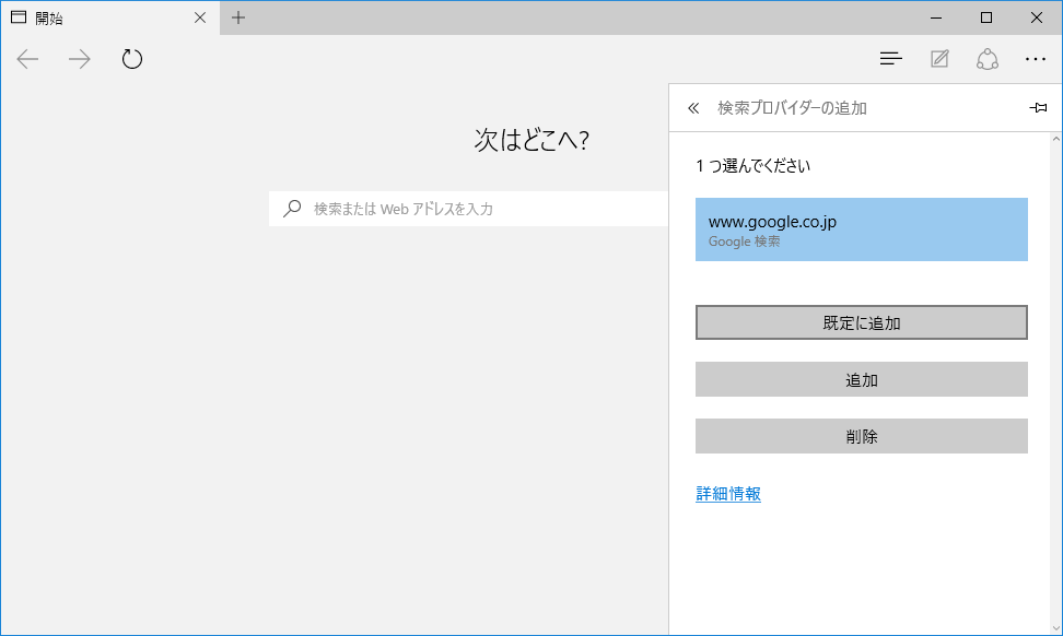 ここで「www.google.co.jp」と書かれた項目をクリックして選択状態にし、「既定に追加」ボタンをクリックします。