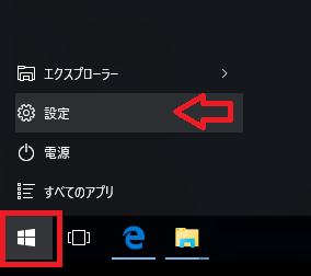 スタートメニューから「設定」をクリックします。