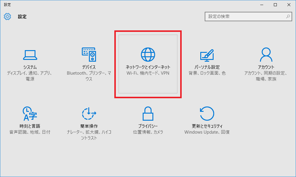 設定の一覧から「ネットワークとインターネット」をクリックします。