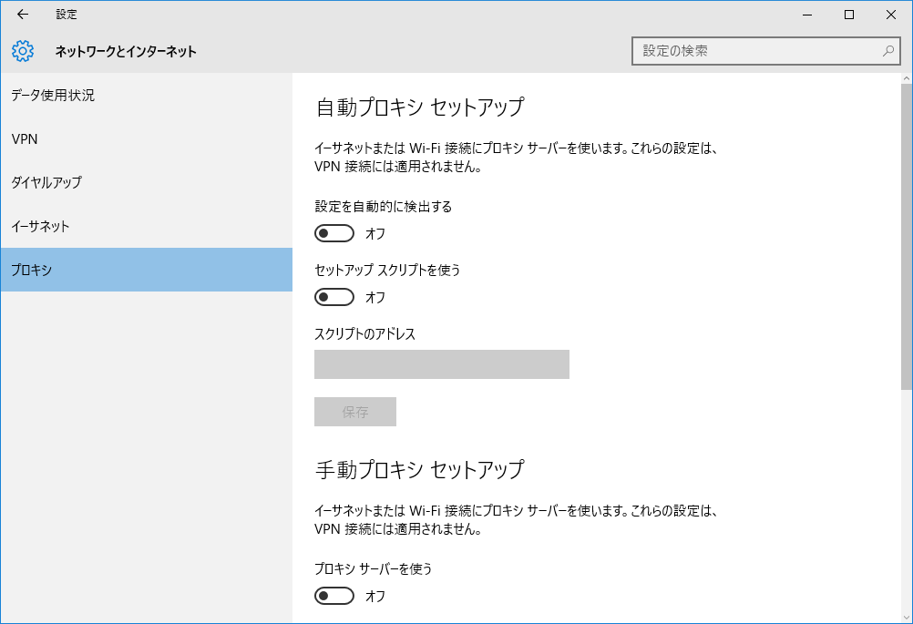左ペイン一番下の「プロキシ」をクリックします。