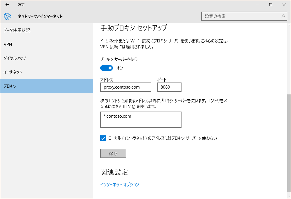 プロキシサーバーの設定などをして「保存」ボタンをクリックします。