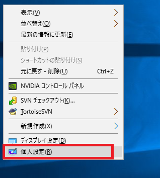 デスクトップで右クリックして「個人設定」をクリックします。