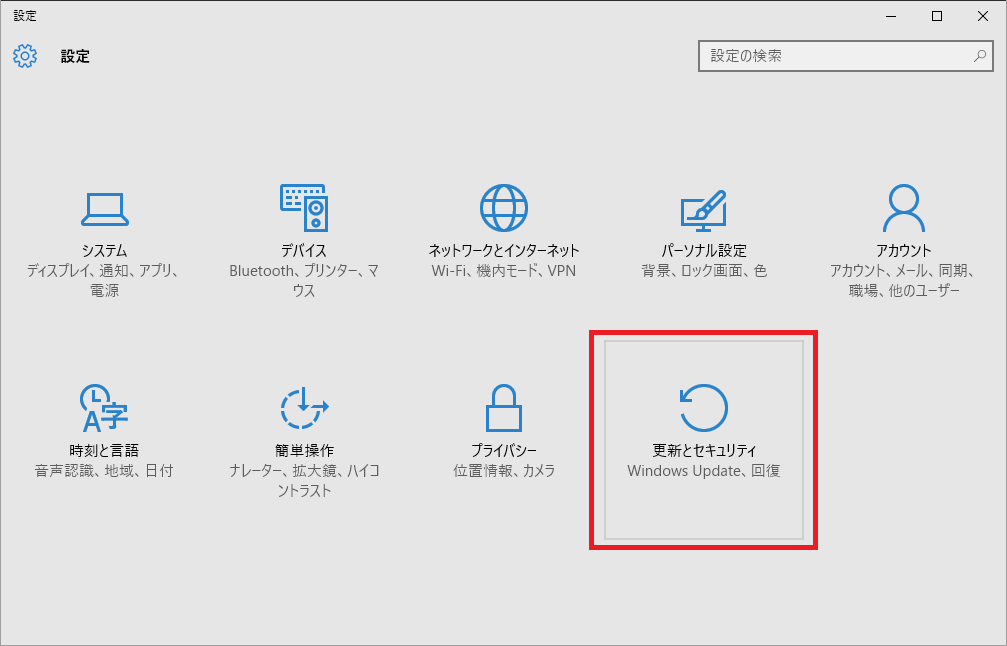 「更新とセキュリティh」をクリックします。