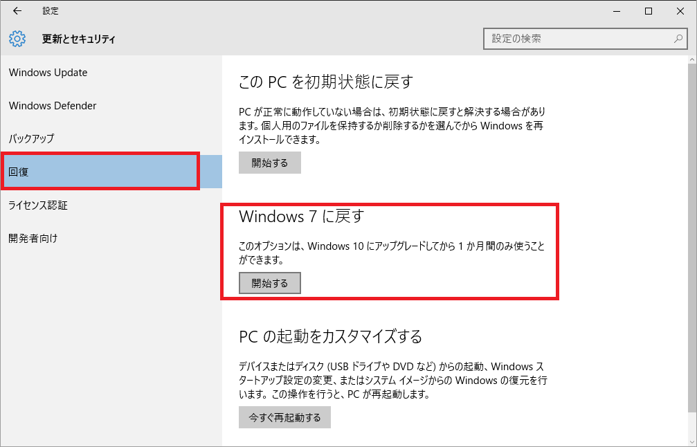 Windows 7 からアップグレードした Windows 10 を Windows 7 に戻す方法