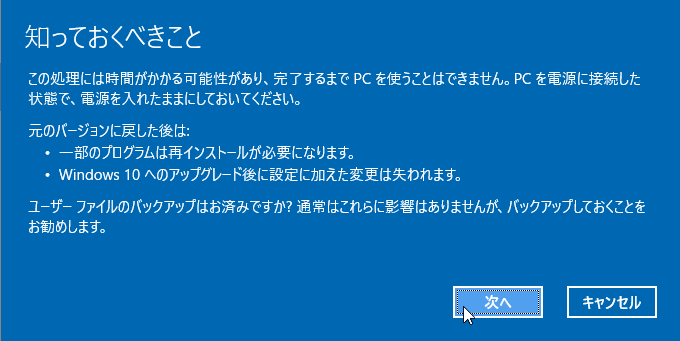 事前に確認をして「次へ」をクリックします。