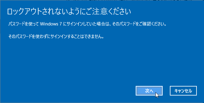 ※Windows 10 でもローカルのアカウントを利用していた場合は問題ありません。