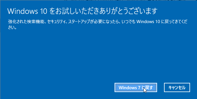 ここで「Windows 7 に戻す」をクリックすると Windows 7 へ戻る処理が開始します。
