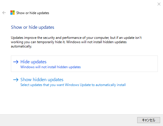 - 「Show or hide updates」が起動します。