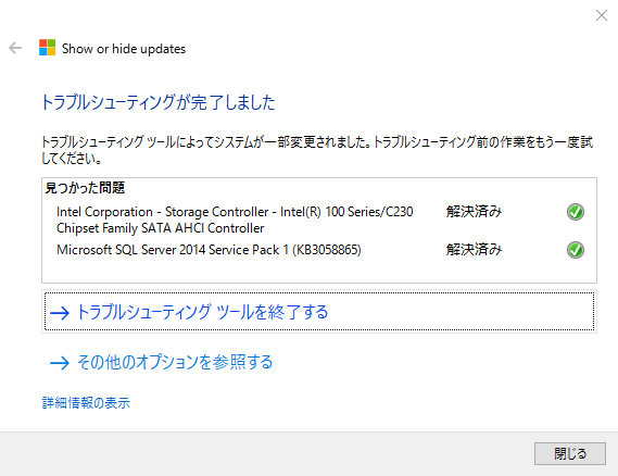 - 「トラブルシューティングが完了しました。」と表示されれば完了です。