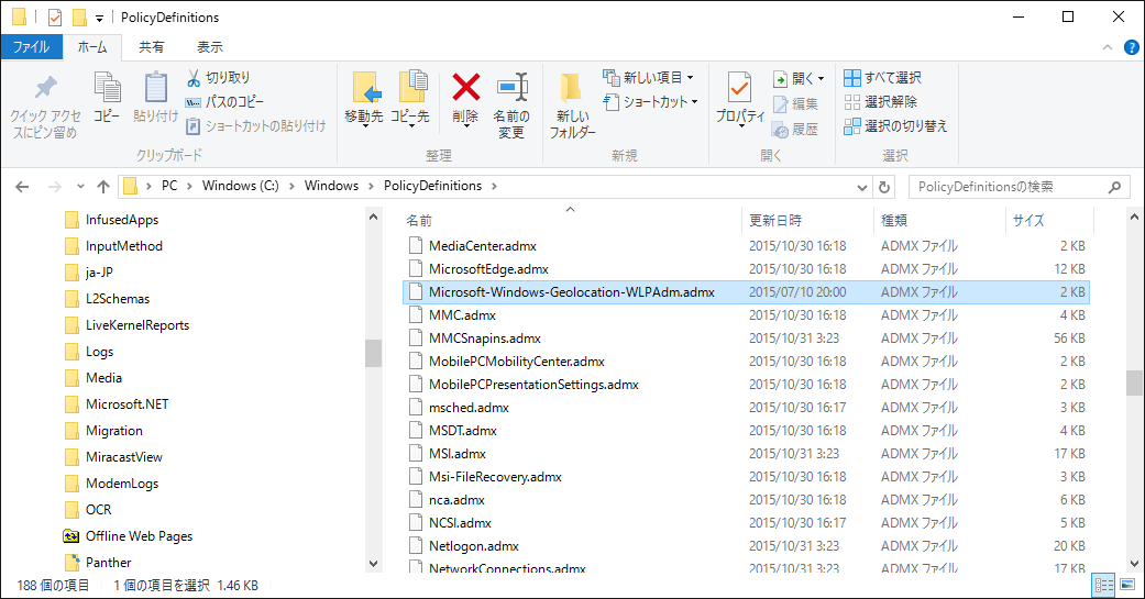 フォルダー内にある「Microsoft-Windows-Geolocation-WLPAdm.admx」を探します。