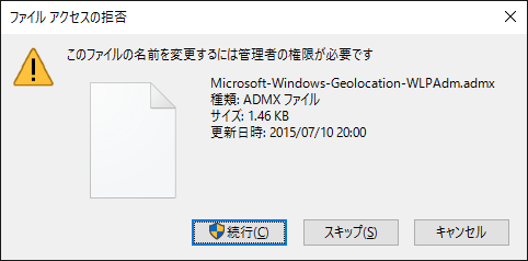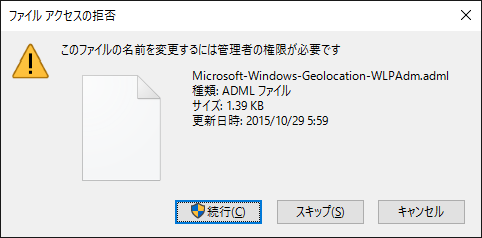 C:\Windows\PolicyDefinitions\ja-jp\Microsoft-Windows-Geolocation-WLPAdm.adml を削除します。