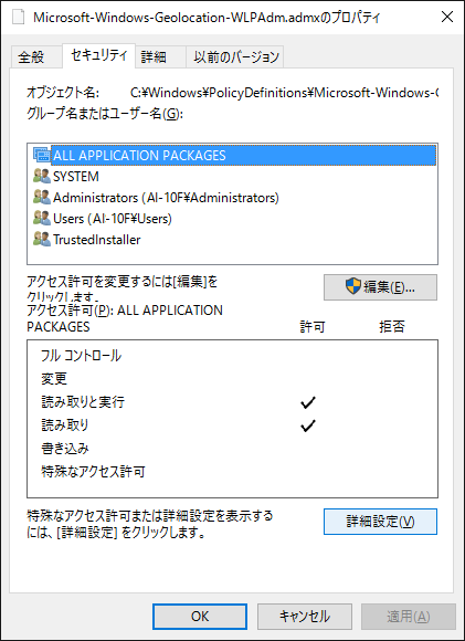 ファイル C:\WINDOWS\PolicyDefinitions\Microsoft-Windows-Geolocation-WLPAdm.admx、行 5、列 110