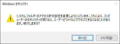 こちらは「アクセス権の拒否」ダイアログが出ますが「続行」をクリックするとそのまま変更できます。