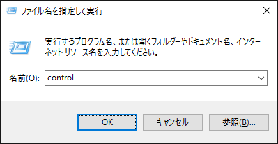 - 「ファイル名を指定して実行」ダイアログが起動します。