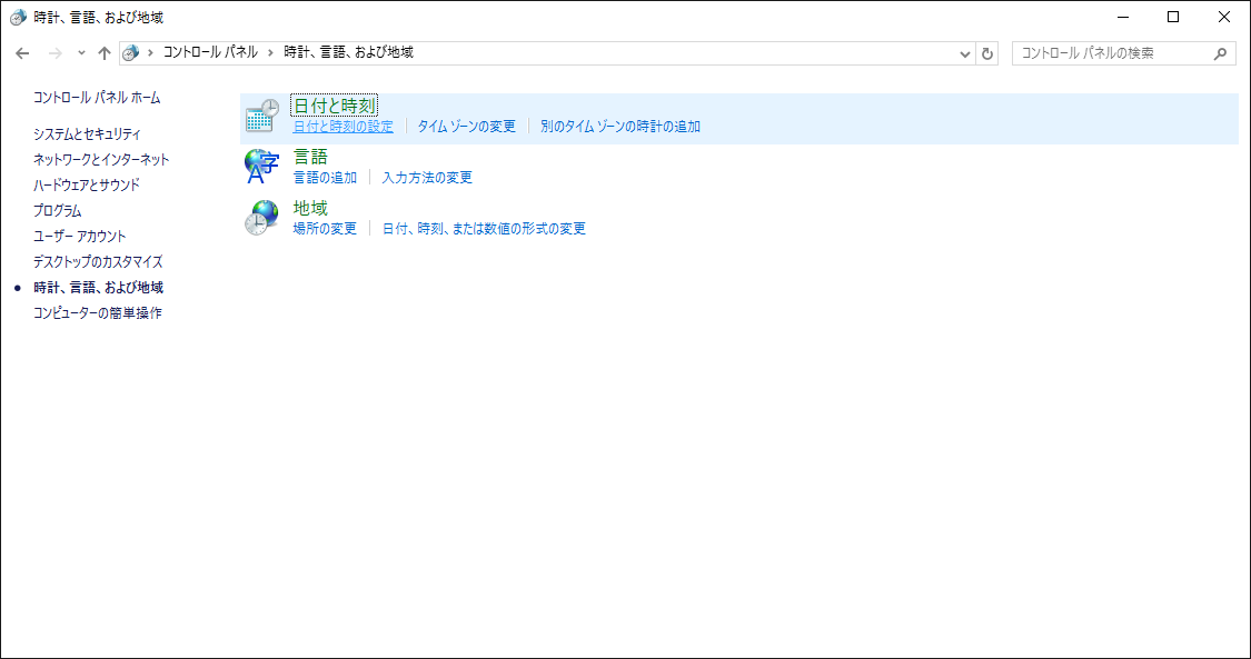 Windows 10 の新しい設定画面にはタイムサーバーを指定する項目がないので従来の設定画面を起動して設定する必要があります。