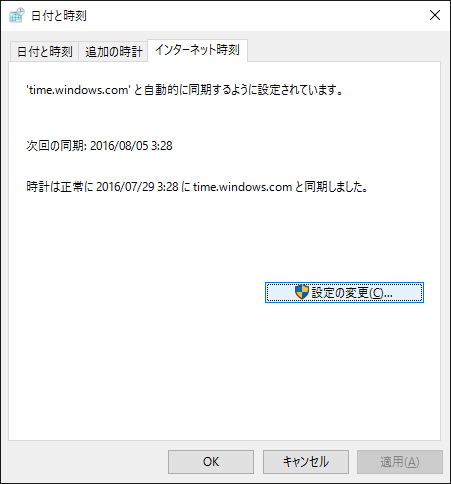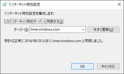 これで、指定したタイムサーバーと時刻同期を行うようになります。