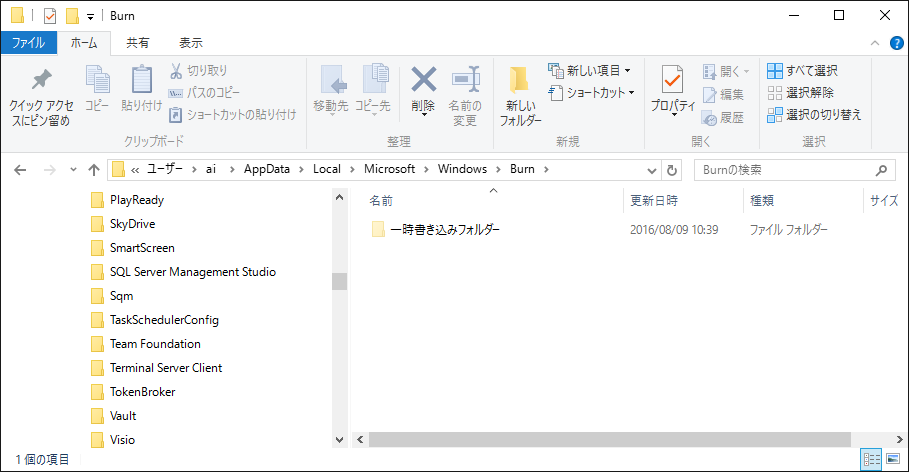 「AppData\Local\Microsoft\Windows\Burn」フォルダーまで開きます。