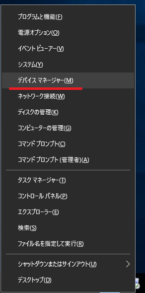 - メニューの一覧から「デバイスマネージャー」をクリックします。