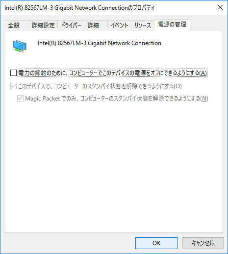 そこで、スリープ時にネットワークアダプタの電源がOFFにならないようにして対応します。