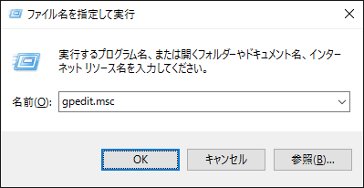 「gpedit.msc」と入力して「OK」をクリックします。