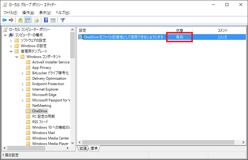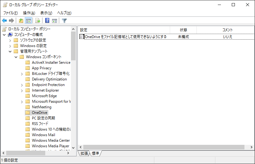 [コンピューターの構成] - [管理用テンプレート] - [Windows コンポーネント] - [One Drive]