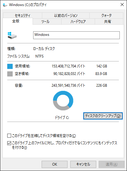 「ディスクのクリーンアップ」ボタンをクリックします。