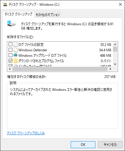 システムファイルをクリーンアップしてディスクの空き容量を増やす