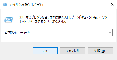 「regedit」と入力して「OK」をクリックします。