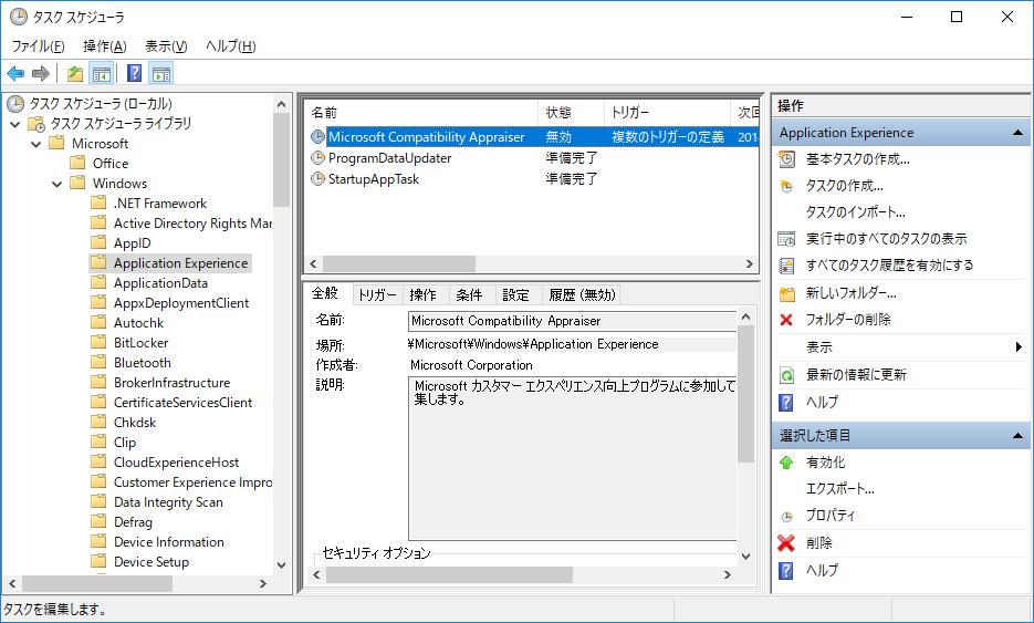 [タスクスケジューラ ライブラリ] - [Microsoft] - [Windows] - [Application Experience] をクリックします。