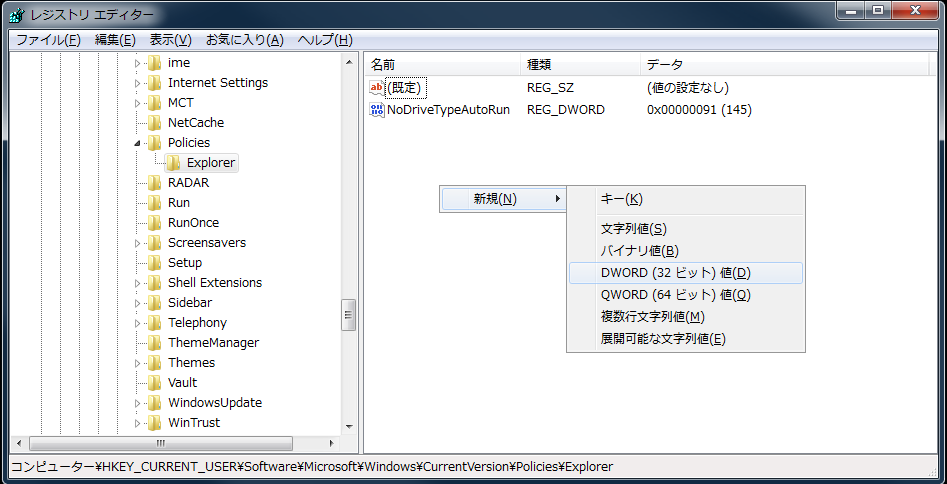 (64ビット環境の場合は「DWORD(32ビット)値」)