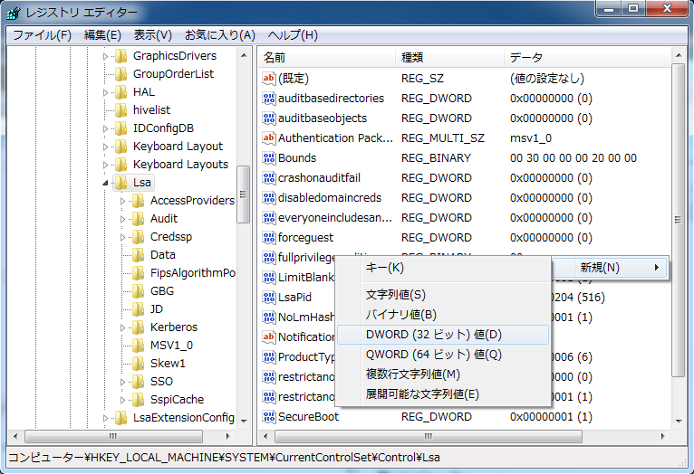 Windows 7 側の認証のレベルを落として接続できるようにします。