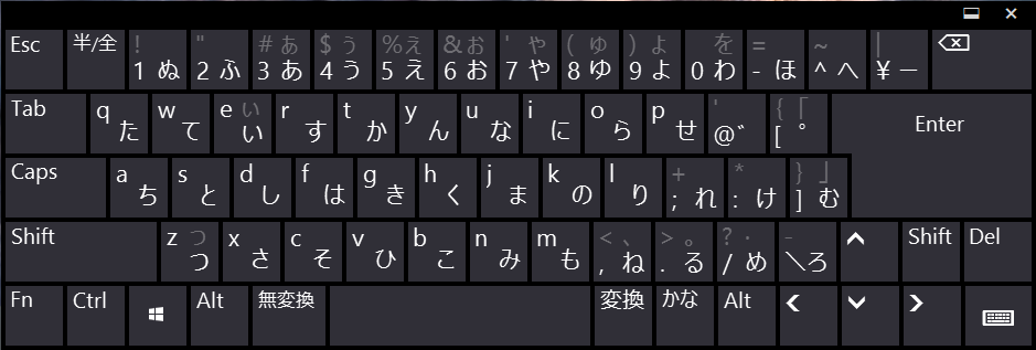 クリックで拡大 - ソフトウェアキーボード右下のレイアウト変更のボタンをクリックすると変更できるレイアウトがひとつ増えています。