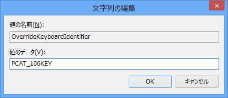 クリックで拡大 - 「OverrideKeyboardIdentifier」を「PCAT_106KEY」に変更します。