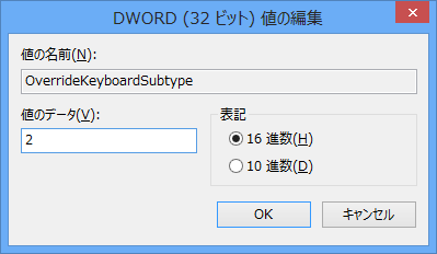 クリックで拡大 - 「OverrideKeyboardSubtype」を「2」に変更します。