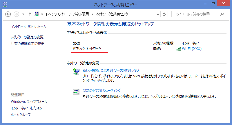 Windows 8.1 でネットワークの場所(パブリックネットワーク / プライベートネットワーク)を変更する方法です。