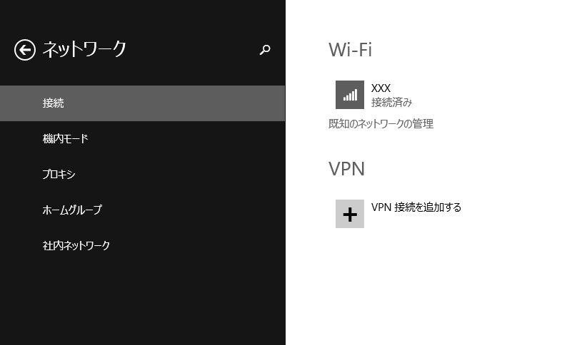 - 左のペインで「接続」を選択し、右ペインで現在接続中のネットワークをクリックします。