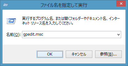 「gpedit.msc」と入力して「OK」をクリックします。