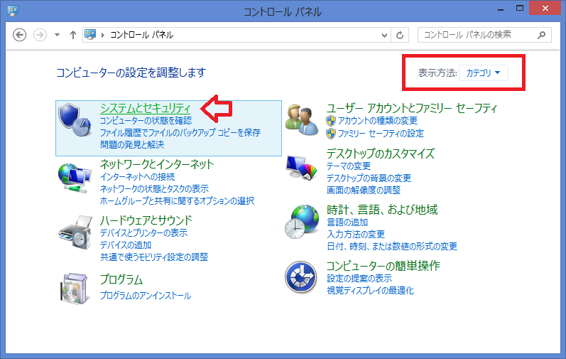 - 「システムとセキュリティ」をクリックします。